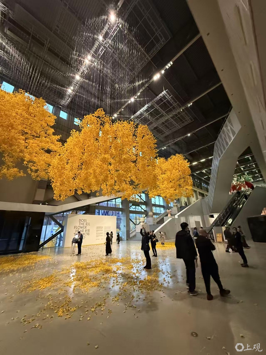 本届双年展的“顶流”是一楼那片由17万朵黄花风铃木花组成的《森之幻影》。 记者摄于现场