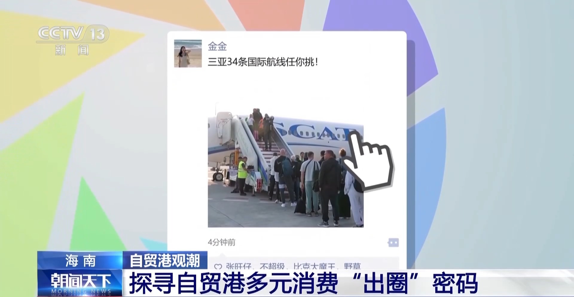 总台记者 金歆竹:海南自贸港封关以后,越来越多的国内外游客以及投资商汇聚海南,海南可以说是消费热、人气旺、产业兴。今天,就给大家翻翻海南自贸港旅文“朋友圈”。